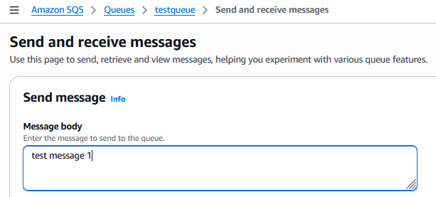 For sending test messages to the SQS queue I will just use the AWS console in the web browser: